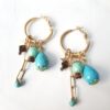 עגילי ג'יפסי בציפוי זהב איכותי עם מבחר תליונים בטורקיז וחום. שילוב מושלם תואם לשרשרת מיקה.