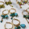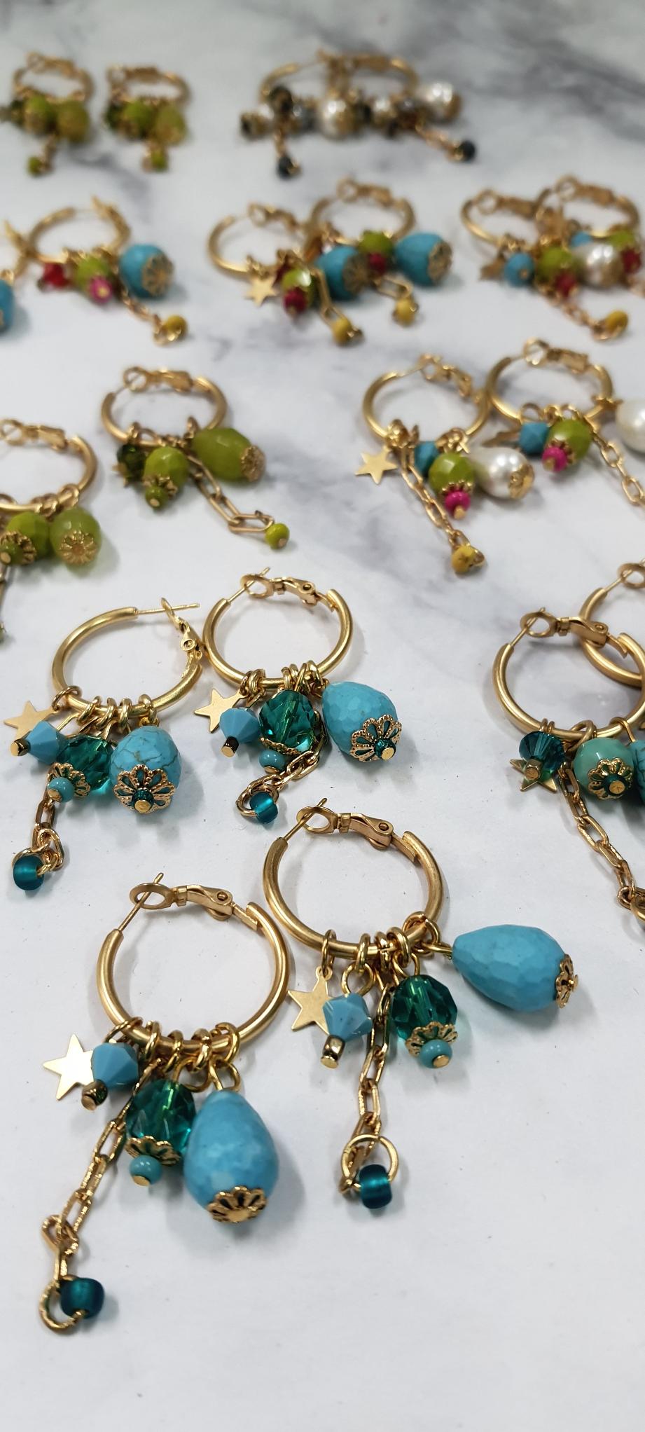 עגילי ג'יפסי בציפוי זהב איכותי עם מבחר תליונים בטורקיז ירקרק.