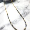 שרשרת ארוכה, חגיגית ומרשימה. שילוב של חרוזי המטייט בסיתותים שונים ובערבוביה הרמונית של צורות וגוונים (זהובים ואפורים), נגיעות פנינים, בגימור שרשרת עדינה בציפוי זהב 14 קראט.