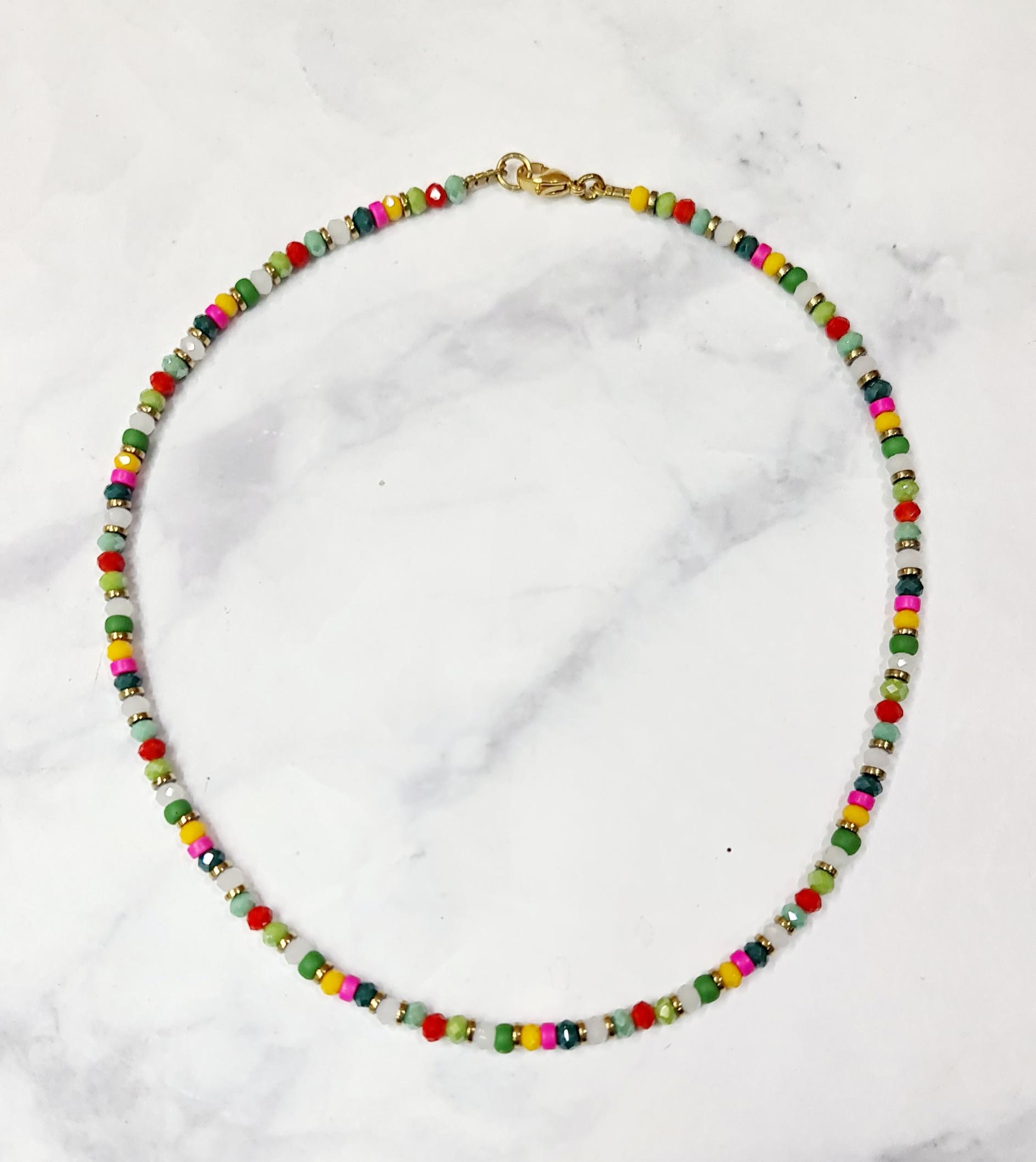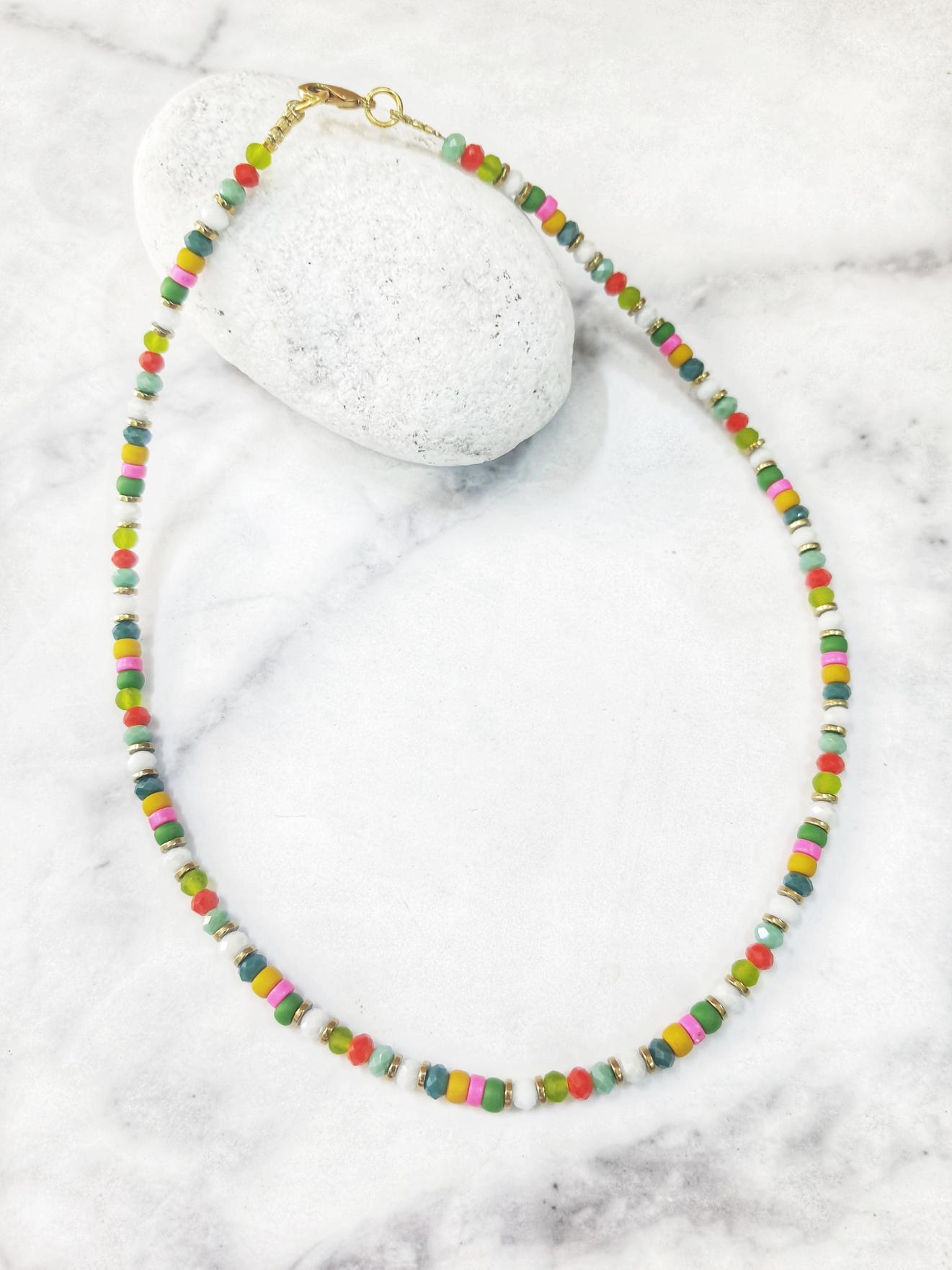 שרשרת צבעונית ושמחה המורכבת מחרוזי קריסטל צבעונים וחוצצי המטייט.